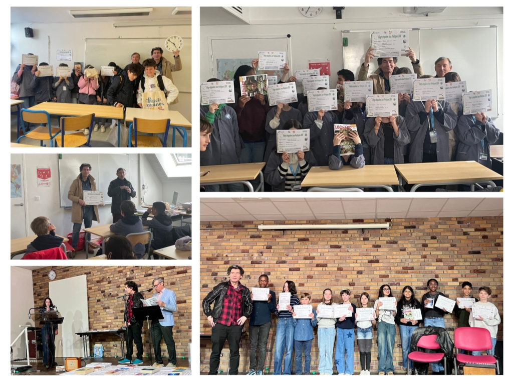 39 de nos 6e sont primés ou diplômés au concours de poésie de Sartrouville, à l’occasion des 25e Jeux poétiques. La remise des prix s’est déroulée le samedi 21 mars, lors de la journée mondiale de la poésie.
